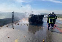 Truck loaded with fruit catches fire on the capital’s highway