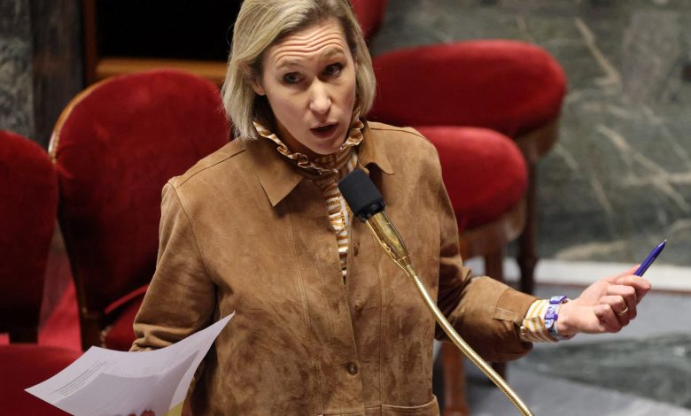 النائبة الفرنسية لور ميلر خلال مشاركتها في نقاش البرلمان قانون حظر وسائل التواصل الاجتماعي على من هم دون سن 15…