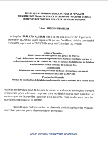ANEP: 2516027789 1ère MISE EN DEMEURE Client: DIRECTION DES TRAVAUX PUBLICS DE LA WILAYA DE BEJAIA Type: 1ère MISE EN DEMEURE Objet: 1ère MISE EN DEMEURE L'entreprise SARL CAN ALGERIE - ¼ page
