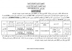 ANEP: 2516028139 AVIS D’ATTRIBUTION PROVISOIRE DU MARCH Client: WILAYA D'ALGER Type: AVIS D'ATTRIBUTION PROVISOIRE DU MARCH Objet: Travaux de réhabilitation de 121 immeubles du vieux bati à travsers les commune de la wailaya… - ¼ page